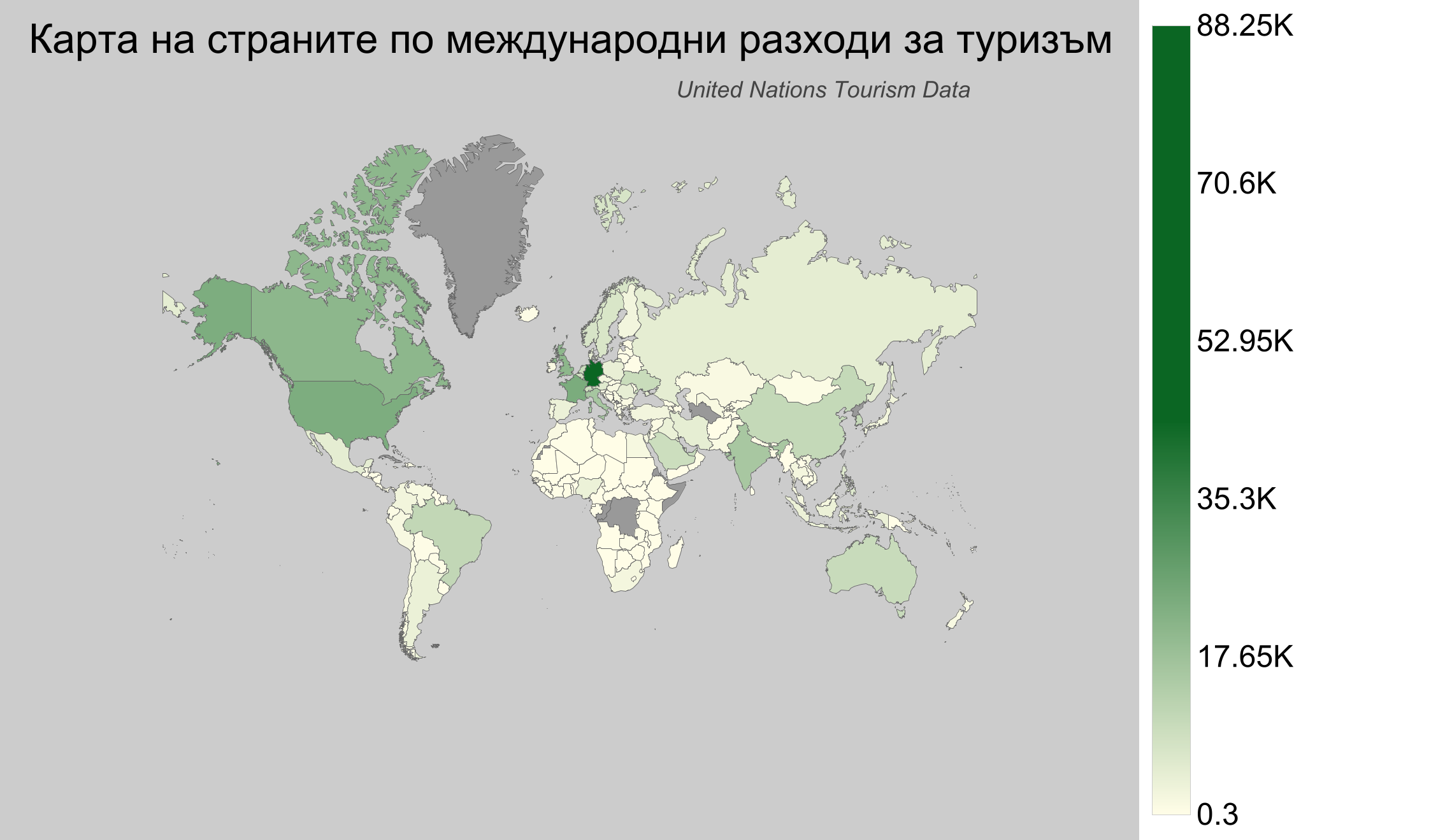 - България: Според данните на Обединените нации за 2023 г., България е на 63-то място в света по международни туристически разходи, с около 1.8 милиарда долара. Страната предлага разнообразие от културни и природни забележителности, което я прави все по-привлекателна за туристите.